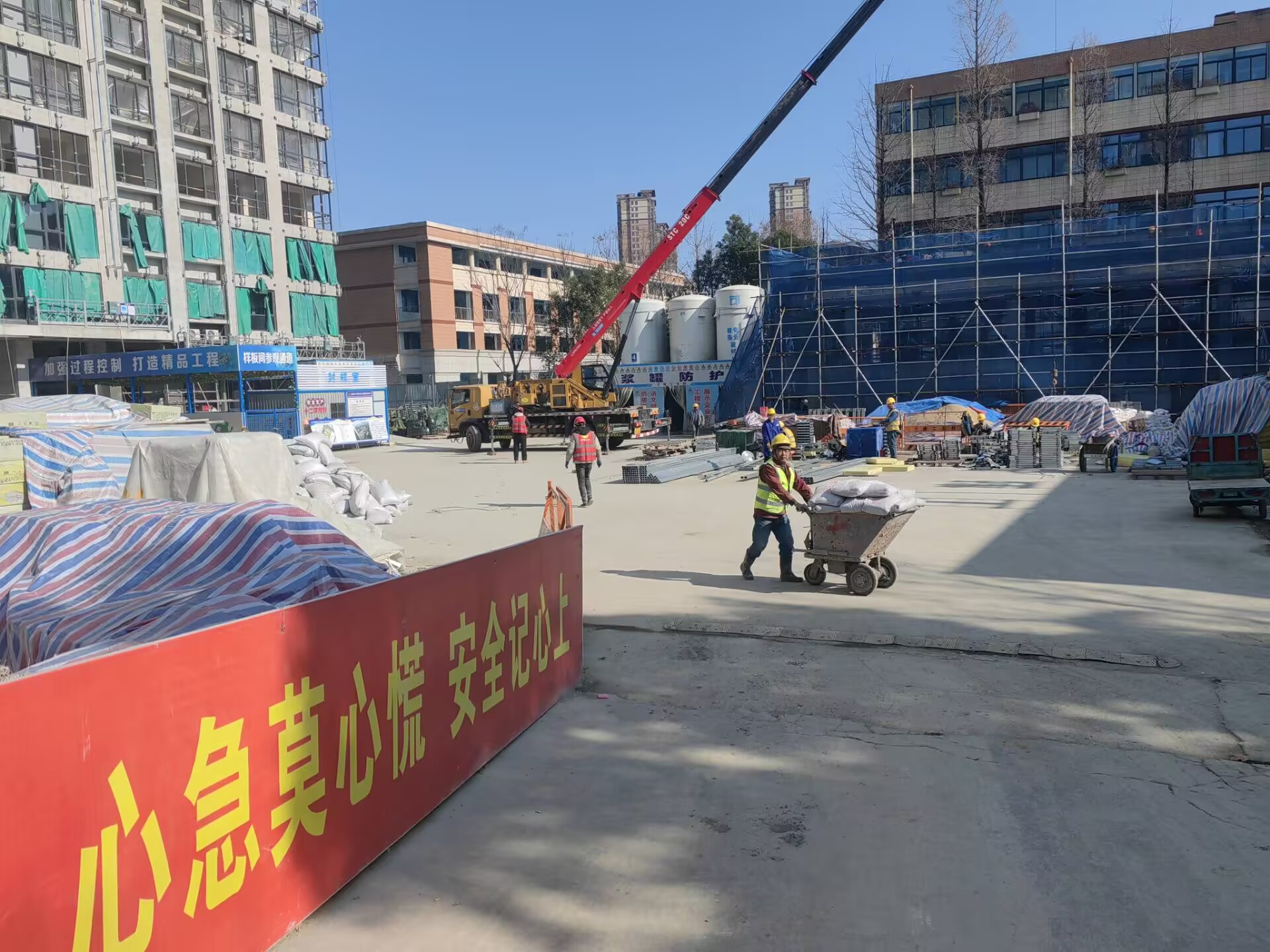 節(jié)后復工,安全是第一位的。項目部在復工前對施工現(xiàn)場進行了拉網式排查,重點檢查了深基坑、高支模、腳手架等危險性較大的分部分項工程,對發(fā)現(xiàn)的安全隱患立即整改,確保施工安全。同時,為了保障施工進度,項目部合理安排施工人員和機械設備,確保各項施工任務按時完成。