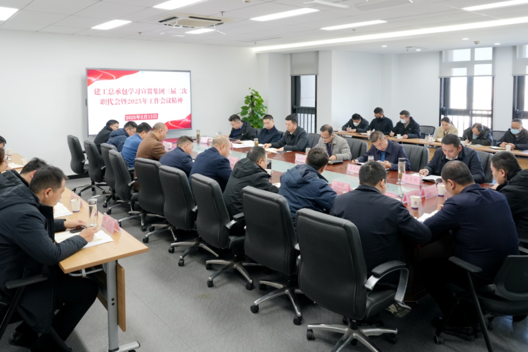 2月13日,公司召開集團三屆二次職代會精神宣貫暨2025年經(jīng)濟指標分析會,迅速學(xué)習宣貫建工控股三屆二次職代會暨2025年工作會議精神,動員廣大干部職工把思想和行動統(tǒng)一到集團決策部署上來。公司領(lǐng)導(dǎo)班子成員,所屬各單位、機關(guān)部門負責同志參加會議,與會人員圍繞公司2025年經(jīng)濟指標和重點工作任務(wù)進行了研討交流。