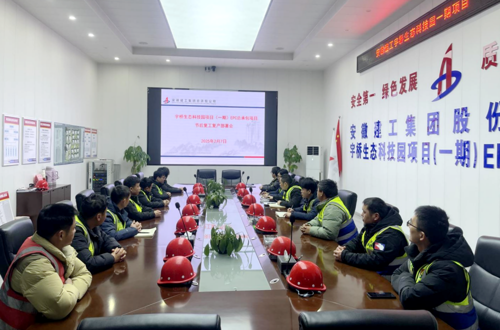 一年之計在于春,項目建設(shè)正當(dāng)時。春節(jié)假期剛過,宇橋生態(tài)科技園(一期)EPC總承包項目按下返崗“快進鍵”,吹響復(fù)工復(fù)產(chǎn)“集結(jié)號”。 項目將安全生產(chǎn)工作放在首位,第一時間召開復(fù)工復(fù)產(chǎn)部署會,科學(xué)謀劃、周密部署,嚴(yán)格落實“五個必須”要求,積極推行“安全生產(chǎn)包?!敝贫?,深入開展“四不兩直”班組專項安全檢查,對項目各要素進行嚴(yán)格把控,全面排查整治安全隱患,堅決筑牢安全生產(chǎn)防線,為項目安全高效復(fù)工復(fù)產(chǎn)保駕護航。全體參建人員統(tǒng)一思想、鼓足干勁,以打造新一代高端科技生態(tài)園區(qū)為目標(biāo),緊盯時間節(jié)點,倒排工期、掛圖作戰(zhàn),全力以赴推進項目建設(shè),確保項目如期高質(zhì)量交付,為打造高端科技生態(tài)園區(qū)標(biāo)桿貢獻力量,為實現(xiàn)全年目標(biāo)任務(wù)開好局、起好步。