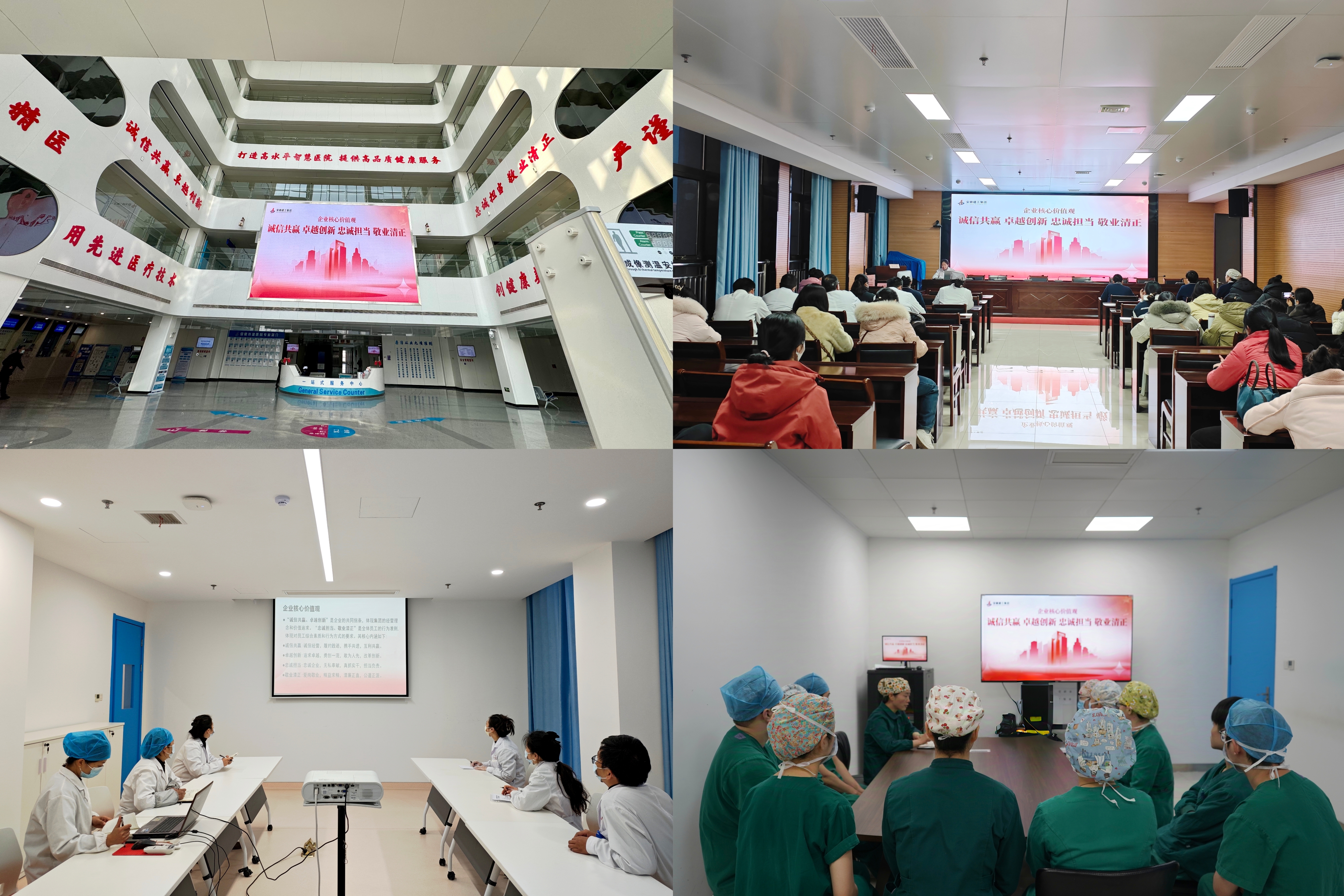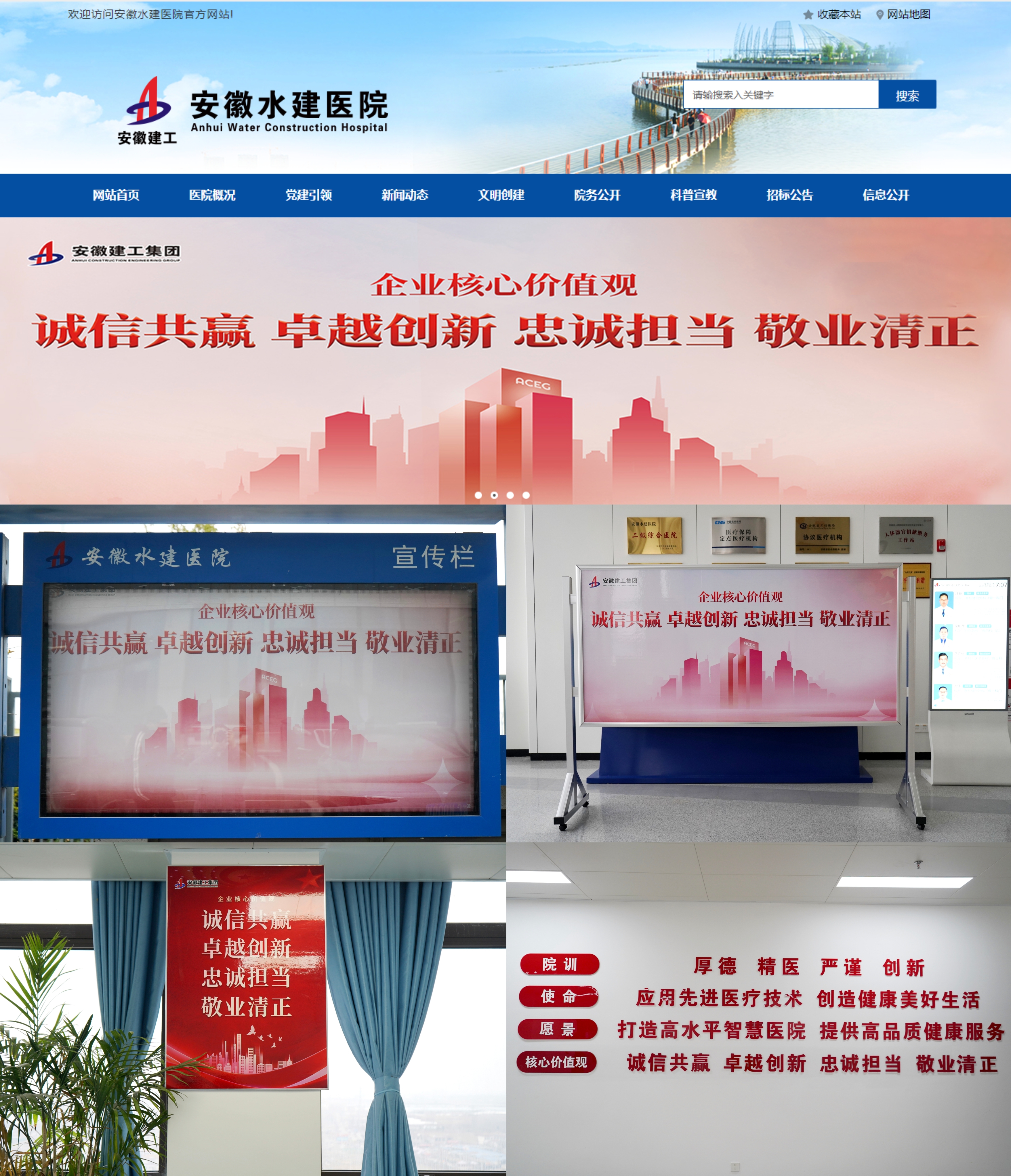 集團(tuán)核心價(jià)值觀發(fā)布后,安徽建工水建醫(yī)院迅速行動(dòng),第一時(shí)間對(duì)宣貫工作進(jìn)行安排部署。通過“三會(huì)一課”、院周例會(huì)、科室培訓(xùn)會(huì)等多種形式進(jìn)行分層分級(jí)學(xué)習(xí)宣貫,引導(dǎo)干部職工立足崗位實(shí)際,就下一步如何深入踐行開展學(xué)習(xí)討論,切實(shí)將核心價(jià)值觀蘊(yùn)含的豐富內(nèi)涵和實(shí)踐要求落實(shí)到醫(yī)療服務(wù)的各個(gè)環(huán)節(jié),做到內(nèi)化于心、外化于行。同時(shí),利用醫(yī)院官網(wǎng)、微信公眾號(hào)、院內(nèi)電子屏、戶外宣傳欄、室內(nèi)宣傳展板等宣傳媒介營(yíng)造濃厚宣傳氛圍。