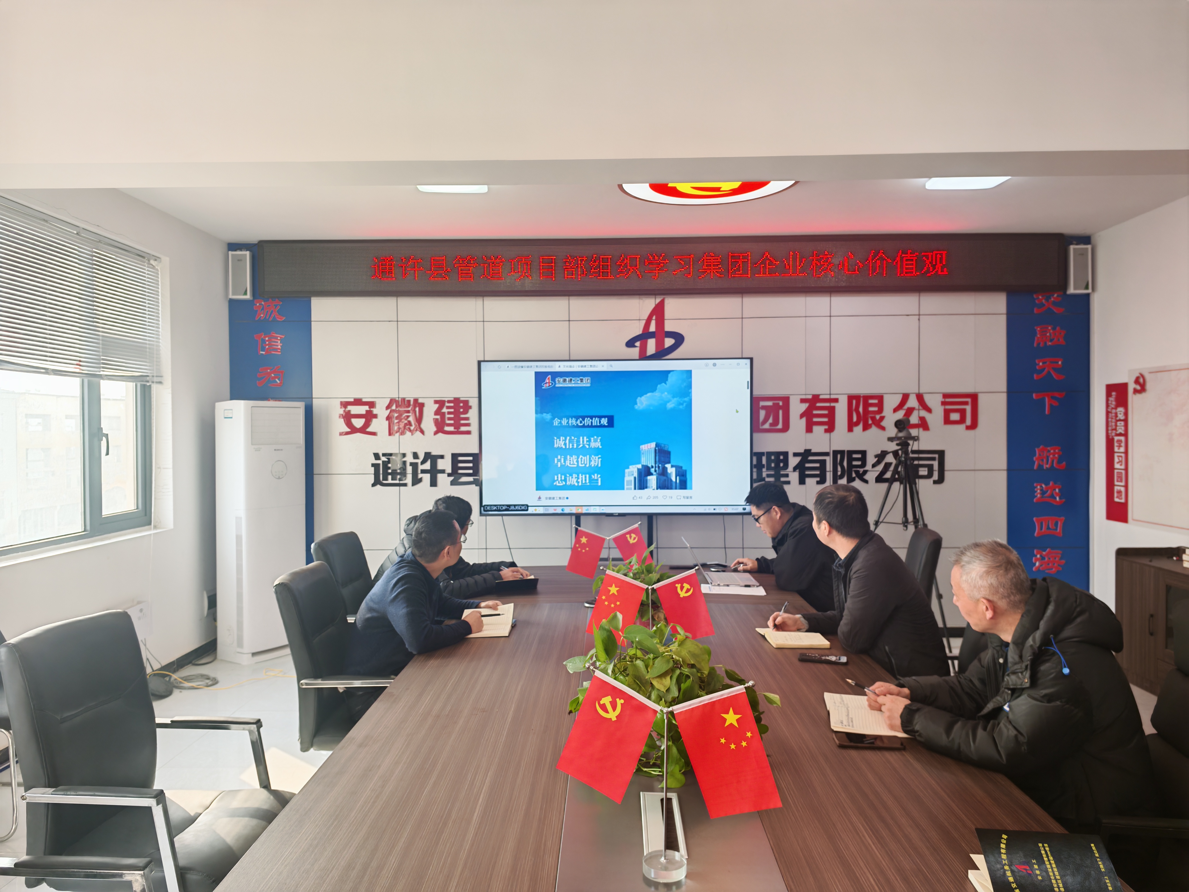 通許縣管道項目組織并召開了集團核心價值觀學習宣貫專題會議,傳達學習了集團《關于開展安徽建工集團核心價值觀學習宣貫的通知》文件,對集團核心價值觀“誠信共贏 卓越創(chuàng)新 忠誠擔當 敬業(yè)清正”進行闡釋講解。