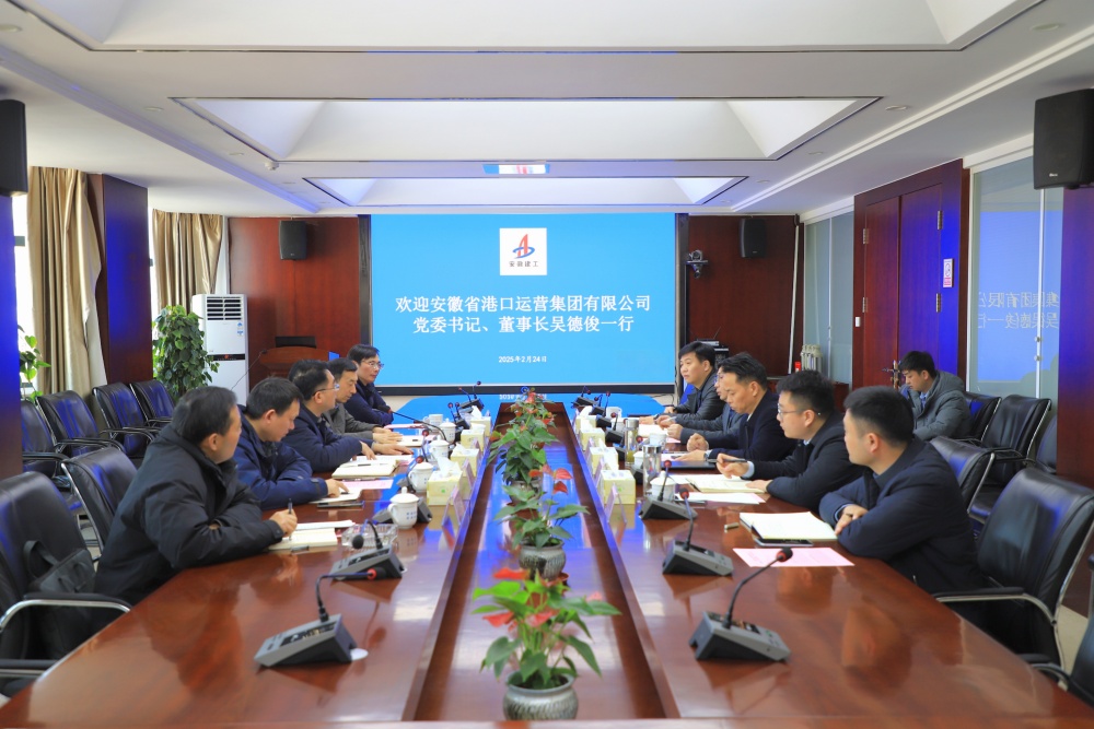 2月24日,安徽省港口運(yùn)營集團(tuán)有限公司黨委書記、董事長吳德俊一行到訪建工商貿(mào)物流,公司黨委副書記、總經(jīng)理張俊熱情接待并就深化合作進(jìn)行座談交流。