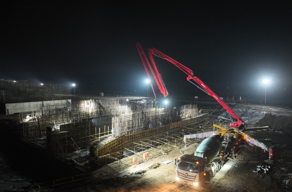 3月7日9時50分,建工水利華陽河項目程營進洪閘首塊閘室墩墻(第九聯(lián)10.5m~15.0m高程)正式開倉澆筑,項目采用1臺汽車泵,5臺12m3混凝土攪拌車,近30人不間斷輪班作業(yè),歷經近21個小時的連續(xù)奮戰(zhàn),于3月8日凌晨6時15分,圓滿完成澆筑任務。