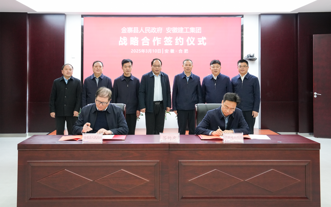 3月10日下午,安徽建工集團(tuán)與金寨縣人民政府簽訂戰(zhàn)略合作協(xié)議。安徽建工控股黨委委員、副總經(jīng)理盛明宏與金寨縣委副書記、縣長董益樂共同見證簽約,并就深化政企合作進(jìn)行座談交流。