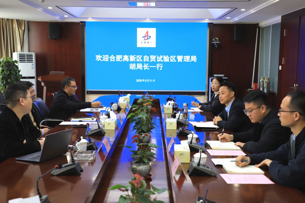 合肥高新區(qū)自貿(mào)試驗區(qū)管理局副局長李流芳、公司領(lǐng)導(dǎo)朱敏、雙方有關(guān)部門負責(zé)同志參加會談。