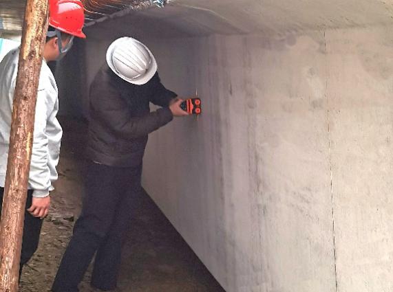 在檢查內業(yè)資料和試驗室的基礎上,檢查組現(xiàn)場抽檢了K30+151跨Y111、Y110分離立交橋15-0立柱、合溪河1號橋左幅7-2箱梁、K29+311蓋板涵等多處混凝土結構物的強度和鋼筋保護層厚度。