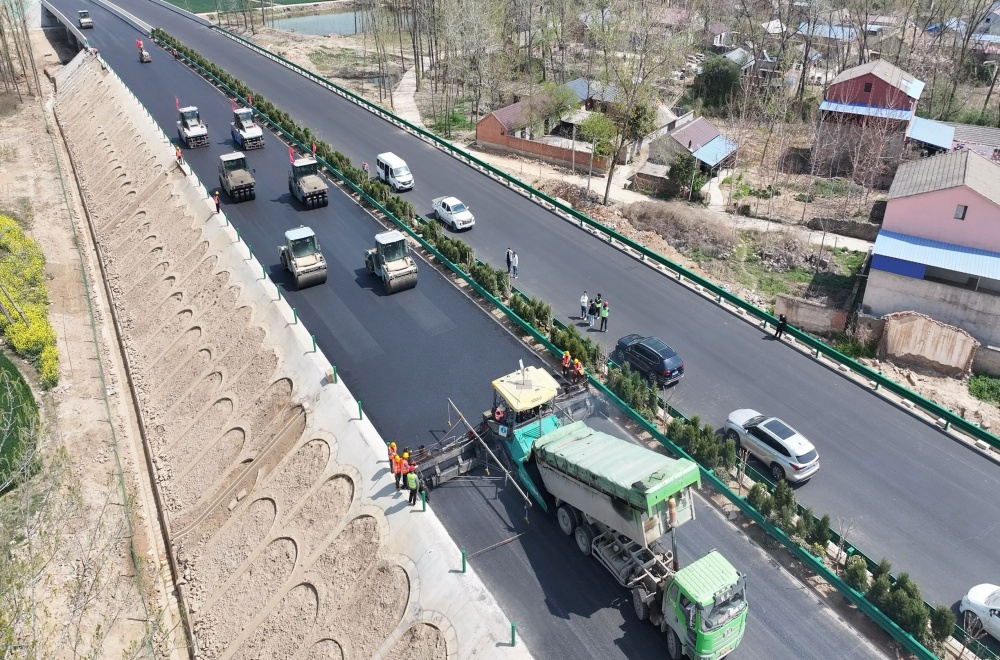 項(xiàng)目全長(zhǎng)約20.06公里,按雙向四車(chē)道高速公路標(biāo)準(zhǔn)建設(shè),設(shè)計(jì)時(shí)速120公里/小時(shí),主線及匝道路面采用瀝青混凝土結(jié)構(gòu)。項(xiàng)目部嚴(yán)格落實(shí)“品質(zhì)工程”要求,引入智能攤鋪監(jiān)控系統(tǒng)、瀝青路面無(wú)人碾壓技術(shù)等先進(jìn)工藝提升了施工安全性與壓實(shí)質(zhì)量。堅(jiān)持以技術(shù)創(chuàng)新推動(dòng)品質(zhì)工程建設(shè),完成3項(xiàng)科研課題立項(xiàng)。自2024年下半年正式開(kāi)工以來(lái),全體參建人員以開(kāi)工即沖刺的決戰(zhàn)姿態(tài),全力拉滿(mǎn)“進(jìn)度條”,用時(shí)6個(gè)月完成項(xiàng)目總產(chǎn)值的90%,2024年度超額完成建設(shè)單位勞動(dòng)競(jìng)賽目標(biāo),并榮獲建設(shè)單位2024年優(yōu)秀施工單位稱(chēng)號(hào)。