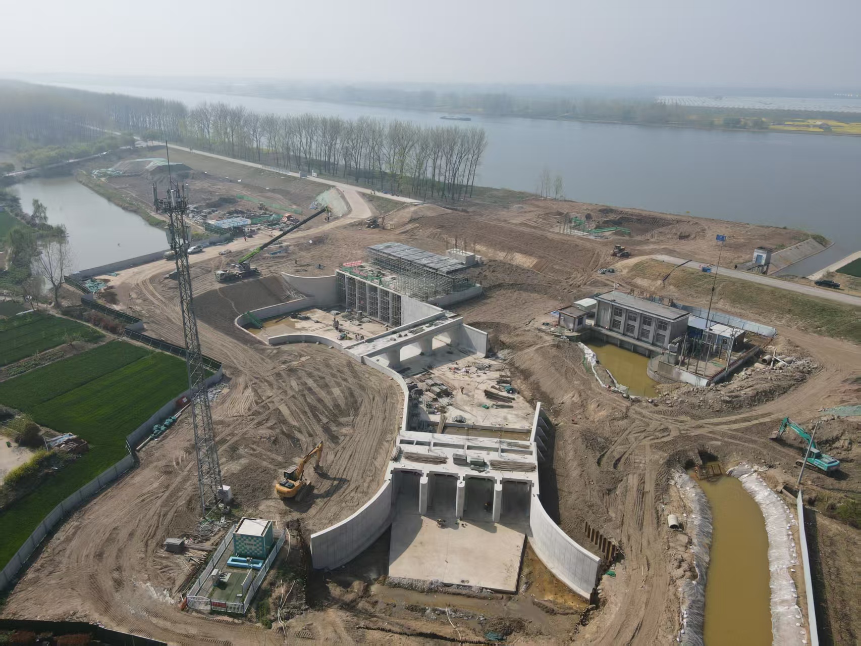三沖二站是項目泵站工程重要組成部分,位于淮北大堤五河縣境內(nèi)原三沖東涵處,在原址基礎(chǔ)上進行擴建。建設(shè)內(nèi)容包括進出水渠、出口防洪閘、抽灌涵及其他附屬工程等,設(shè)計功能為抽排、自排及抽灌,抽排流量18.95m3/s,自排流量54.23m3/s,共設(shè)6臺機組,總裝機1890kW,為中型泵站。目前,三沖二站泵室流道層、控制段高程19.5米以下、穿堤涵1#-7#洞身及出口翼墻等部位已完成混凝土澆筑,正全力推進泵室電機層鋼筋綁扎、模板制安以及堤防土方回填作業(yè)。