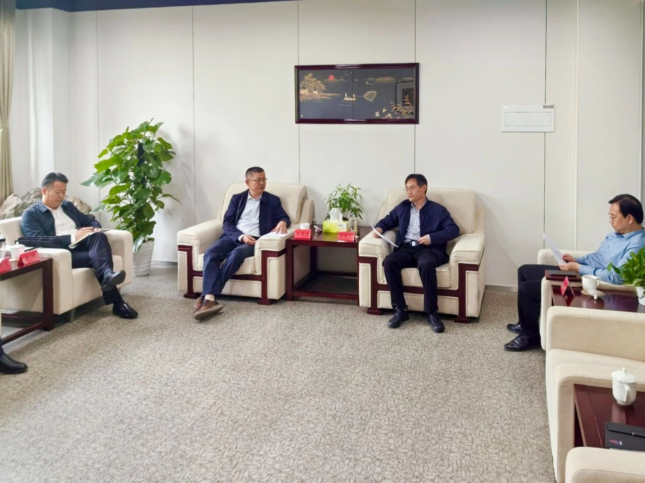王淑德與中國雄安集團(tuán)黨委常委、副總經(jīng)理、生態(tài)建設(shè)公司黨委書記、董事長李振伏就集團(tuán)發(fā)展、市場布局、項目投資等方面進(jìn)行了深入交流,表示將持續(xù)深化交流互動,共同構(gòu)建互惠共贏的良好合作關(guān)系。