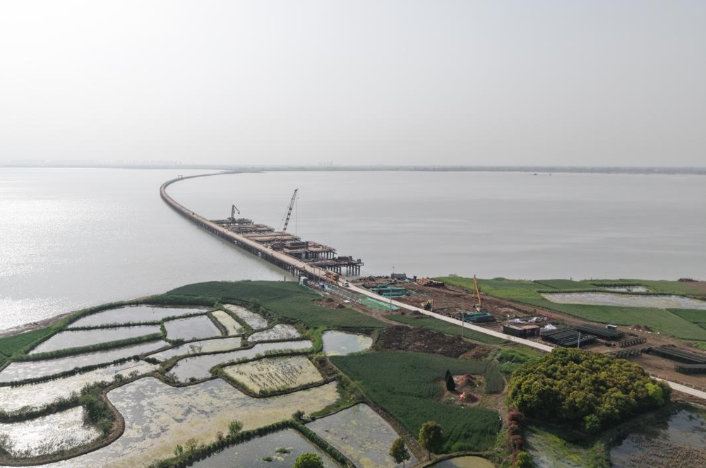 4月2日和8日,城東湖、城西湖兩座鋼便橋相繼合龍,為后續(xù)項目建設打通了“任督二脈”,標志著項目物資運輸和機械調(diào)度的“生命線”全線貫通,特大橋?qū)⒄竭M入施工建設階段。