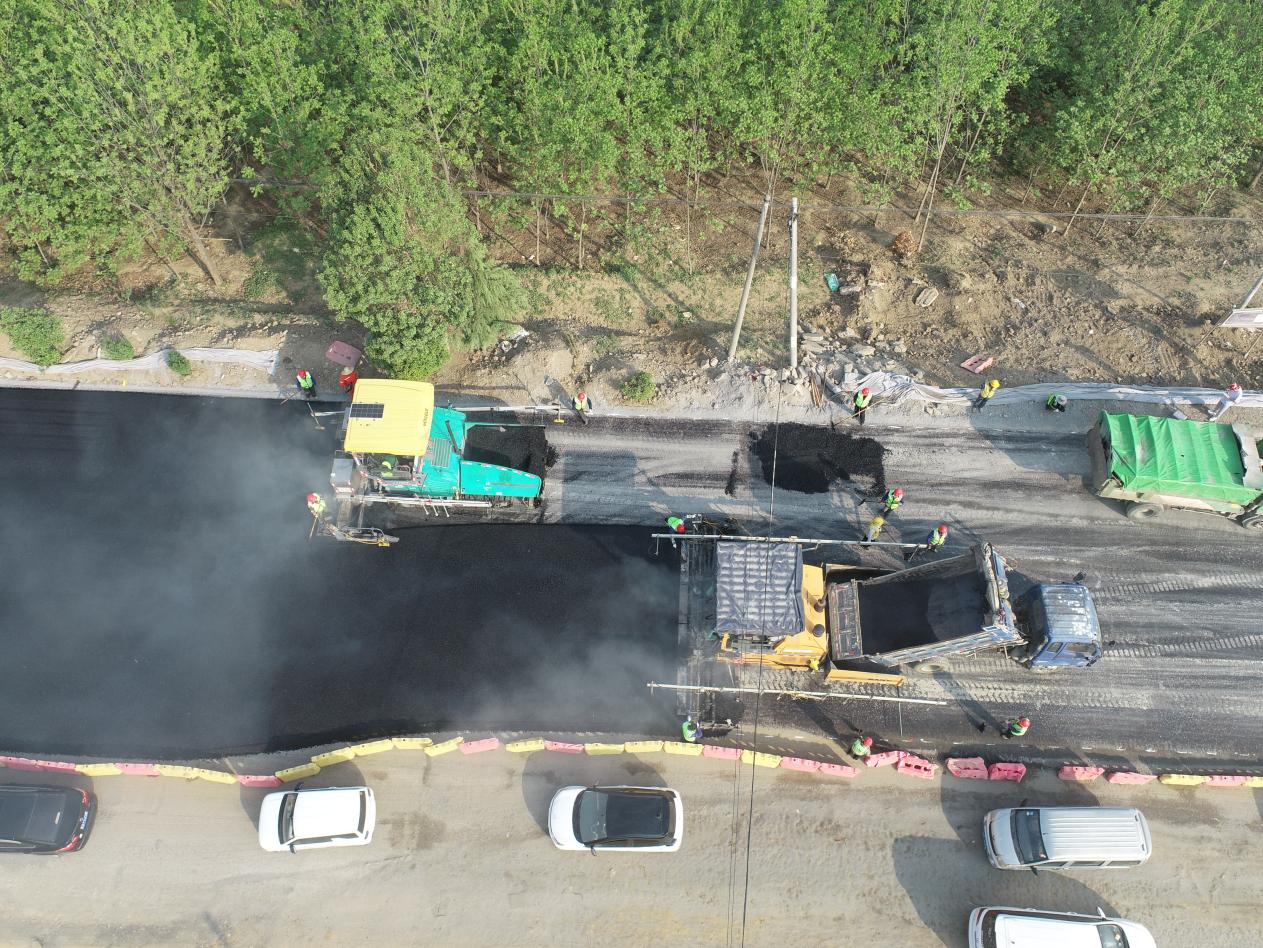 本次攤鋪段為K0+100~K0+820右幅處,攤鋪長度為402米,寬度為12.5米,采用4cmAC-13C細粒式瀝青砼(SBS改性)+6cmAC-20C中粒式瀝青砼(SBS改性)鋪筑,厚度為10厘米。針對本次攤鋪,項目提前安排部署,合理配備人機物料,克服橋面瀝青鋪裝施工阻礙等不利因素,確保攤鋪施工銜接有序、高效優(yōu)質(zhì)完成。