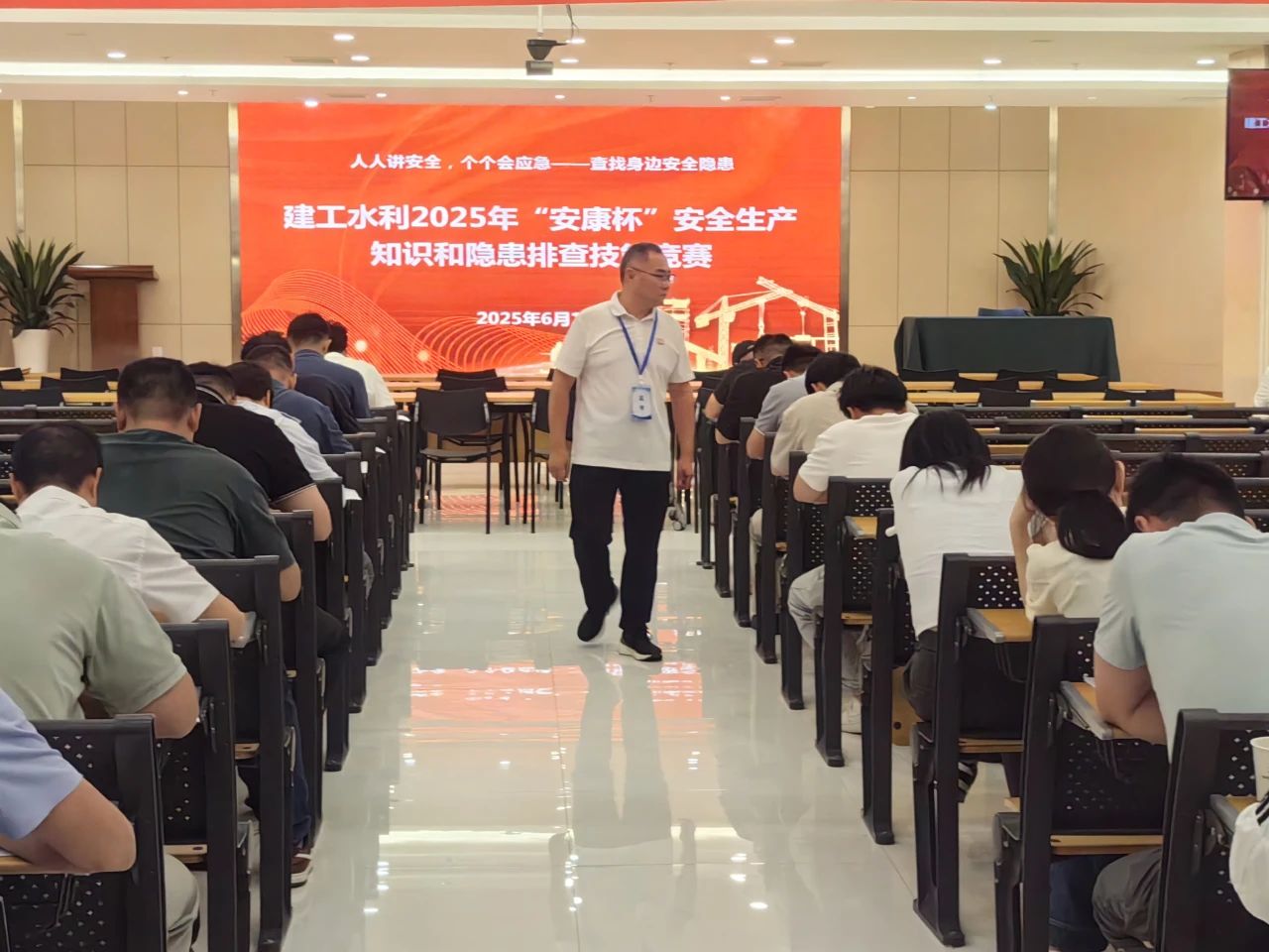 為深入開展第24個(gè)全國(guó)“安全生產(chǎn)月”活動(dòng),提升全員安全素養(yǎng),6月18日,建工水利公司安全環(huán)境監(jiān)察局、工會(huì)聯(lián)合舉辦2025年度“安康杯”安全生產(chǎn)知識(shí)和隱患排查技能競(jìng)賽。建工水利公司黨委副書記、副總經(jīng)理王勝利出席活動(dòng)并致辭,黨委委員、副總經(jīng)理王志強(qiáng)出席活動(dòng)。