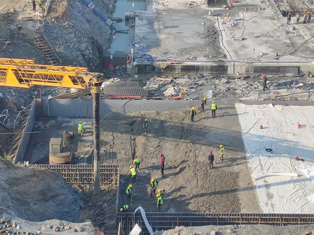此次水下結(jié)構(gòu)施工的圓滿完成,不僅為項(xiàng)目安全度汛筑牢了防線,更為實(shí)現(xiàn)年底通水目標(biāo)奠定了堅(jiān)實(shí)基礎(chǔ)。截至目前,項(xiàng)目累計(jì)完成混凝土澆筑量已達(dá)15000余立方米,其中主廠房水下結(jié)構(gòu)全部完工,進(jìn)水池空箱擋墻4#-8#及前池4#-8#施工也基本完成。