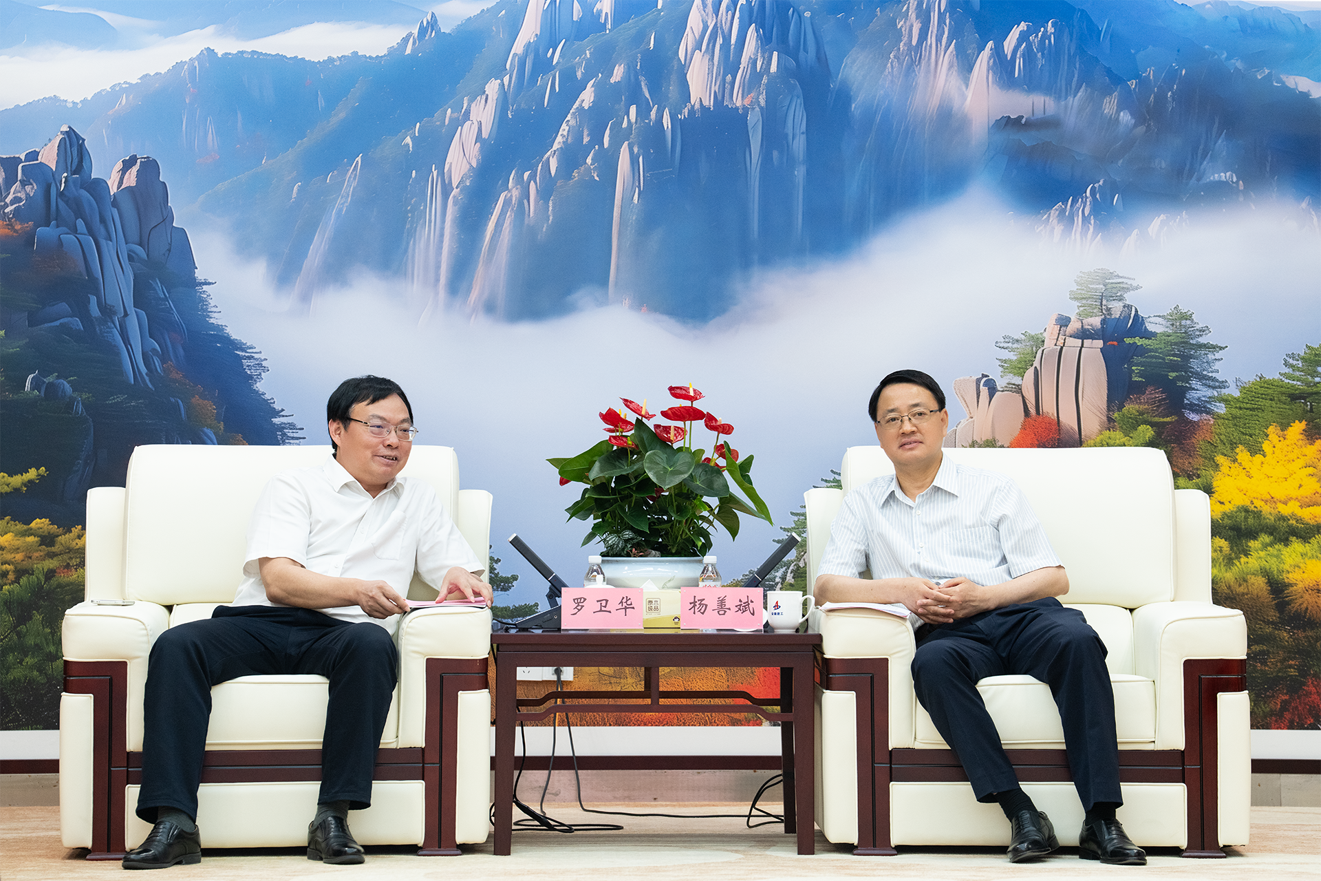 6月25日下午,安徽建工集團黨委書記、董事長楊善斌在安建國際大廈會見來訪的湖南高速集團黨委書記、董事長羅衛(wèi)華一行,并舉行工作會談。