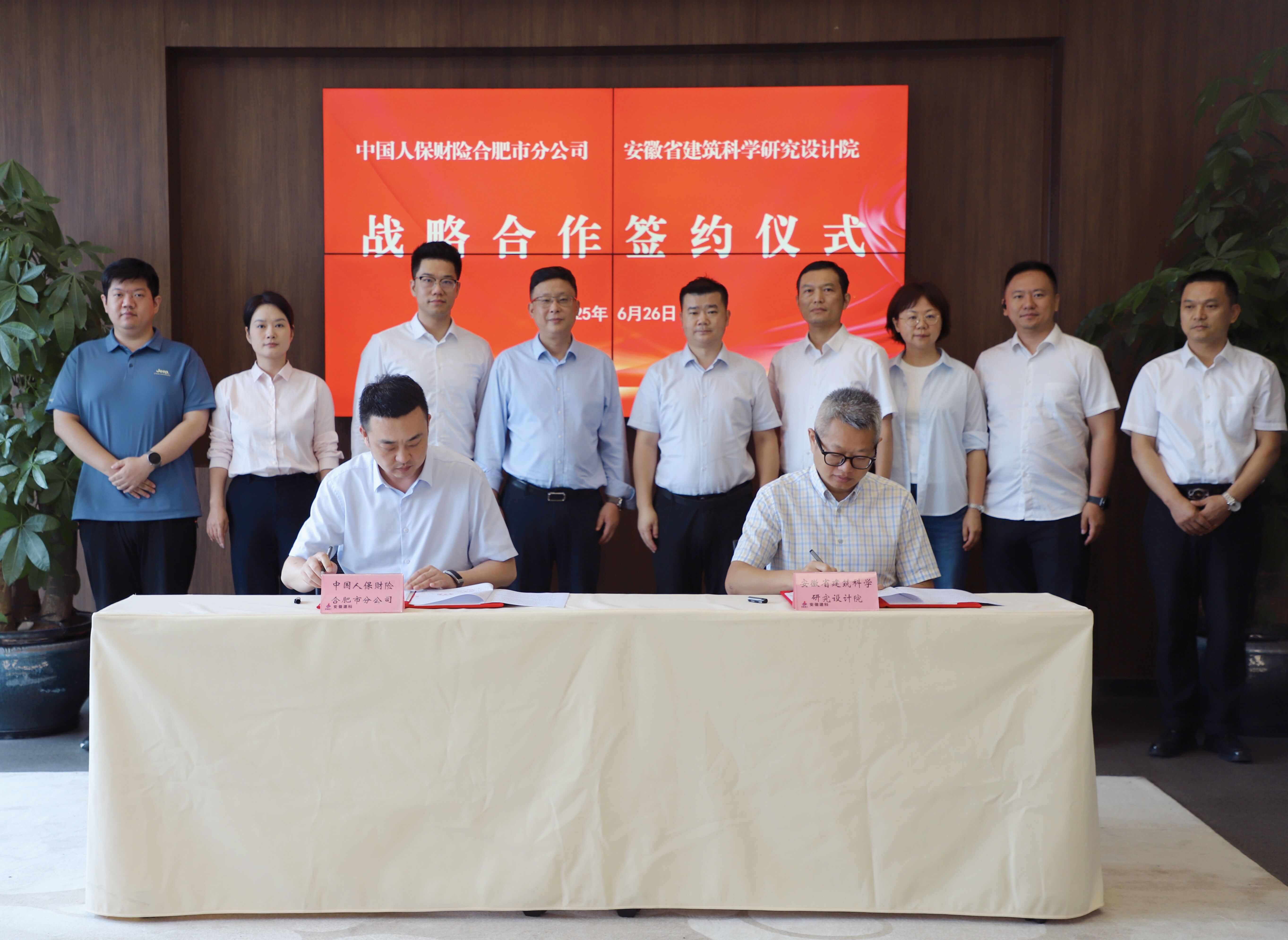 6月26日上午,安徽省建科院與中國(guó)人民財(cái)產(chǎn)保險(xiǎn)股份有限公司合肥市分公司(以下簡(jiǎn)稱“中國(guó)人保財(cái)險(xiǎn)合肥市分公司”)簽訂戰(zhàn)略合作協(xié)議,院黨委副書記、院長(zhǎng)劉春雷,中國(guó)人保財(cái)險(xiǎn)合肥市分公司黨委書記、總經(jīng)理唐鑫出席簽約儀式。