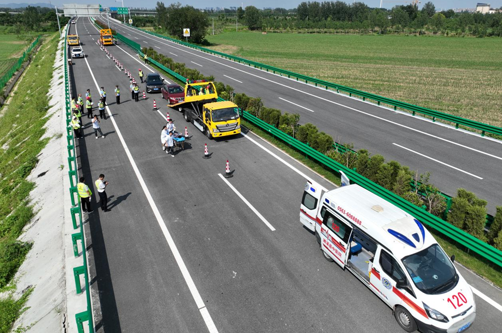 6 月 30 日下午,建工投資徐淮阜高速公路聯(lián)合高速交警、路政、衛(wèi)健委等多部門開展交通事故應(yīng)急處置實戰(zhàn)演練。