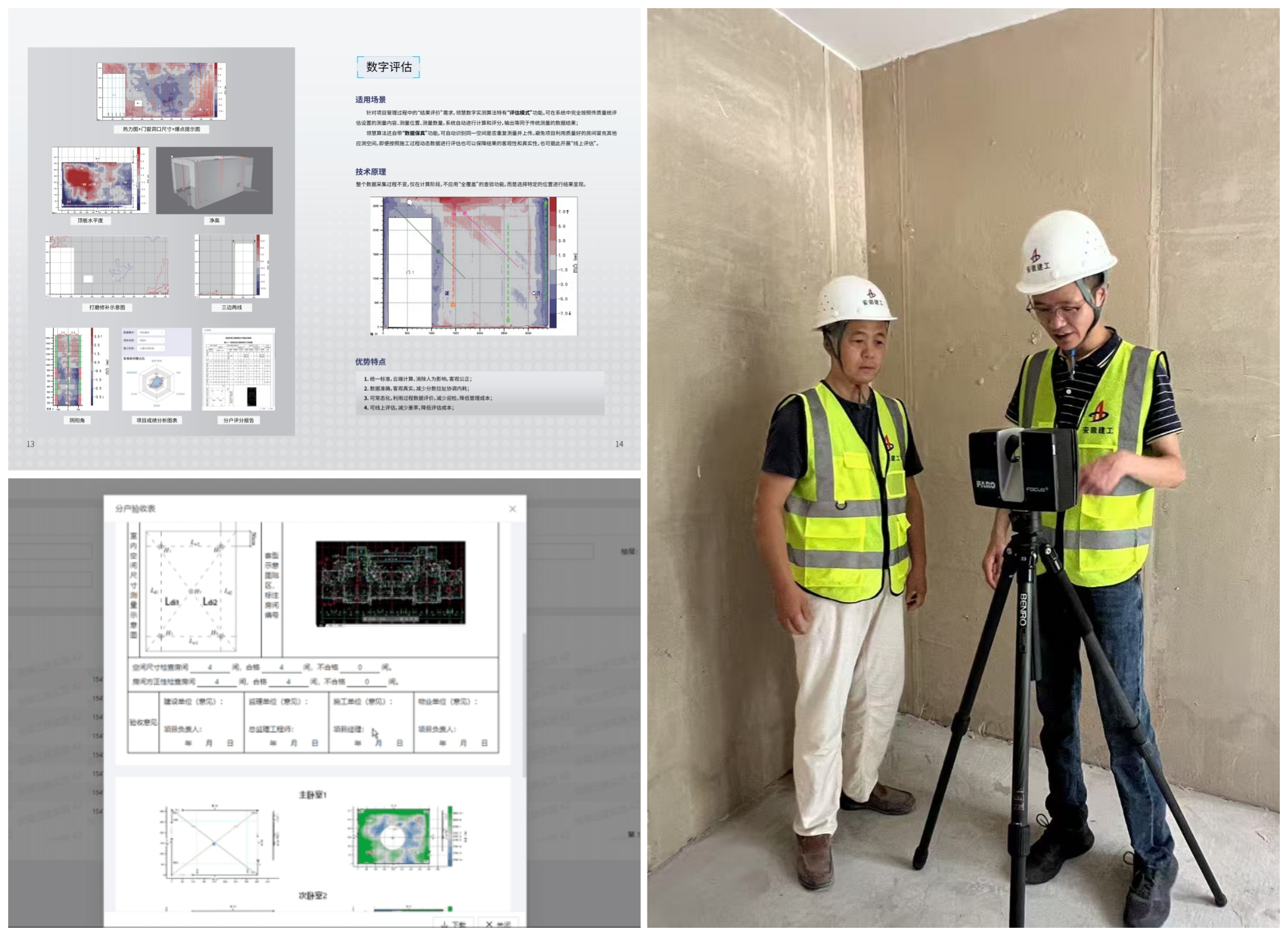 在合肥新西站安置點項目現(xiàn)場,操作人員通過移動終端操控實測實量機器人,僅需3-5分鐘即可完成單戶多房間全屋掃描。機器人搭載的三維激光掃描儀以每秒200萬點速度捕捉空間數(shù)據(jù),自動執(zhí)行墻面平整度、垂直度、陰陽角方正度等測量任務(wù),實時生成多維度數(shù)據(jù)報告,表格可按分戶驗收格式自動導(dǎo)出。相較傳統(tǒng)2人45分鐘(含20分鐘人工制表)的作業(yè)模式,效率提升近10倍,且規(guī)避了人為測量誤差。實測實量機器人的應(yīng)用,既減輕了項目人員測量工作負擔(dān),又提高了分戶驗收數(shù)據(jù)準(zhǔn)確性,提升住宅工程交付效率,還可以減少中間移交糾紛,實現(xiàn)測量數(shù)據(jù)貫穿驗收、整改、移交等各階段,數(shù)據(jù)可溯源、可共享、可重復(fù)利用,杜絕人為干擾,有效增強工程管理透明度。