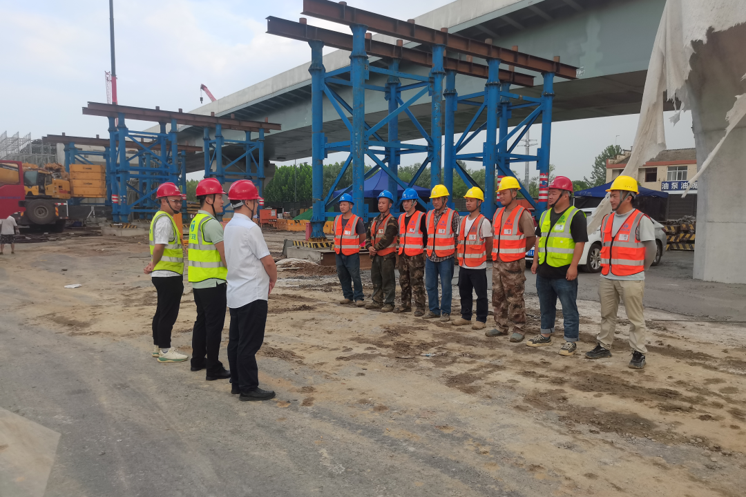 本次吊裝的首片鋼箱梁采用單箱三室結(jié)構(gòu),尺寸為長22.6米、寬3.75米、高2.6米,重約66噸。施工團(tuán)隊(duì)周密部署,精準(zhǔn)調(diào)度350噸吊車進(jìn)行單機(jī)作業(yè),確保了吊裝過程安全、精準(zhǔn)。針對上跨既有G312道路的施工難點(diǎn),項(xiàng)目部面對焊接工作量大、焊縫質(zhì)量要求高等挑戰(zhàn),通過強(qiáng)化班前安全技術(shù)交底、持續(xù)優(yōu)化施工方案,有效保障了鋼箱梁的轉(zhuǎn)體、起吊、安裝與精準(zhǔn)定位,有力推進(jìn)了工程進(jìn)度。