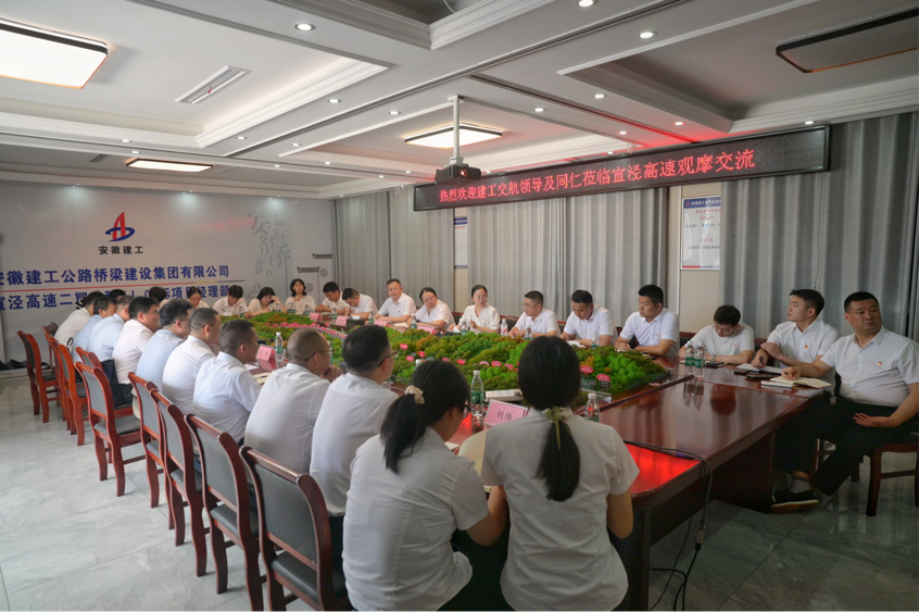 隨后,前往建工路橋宣涇高速項(xiàng)目駐地,觀看項(xiàng)目建設(shè)宣傳片,聽取項(xiàng)目黨建工作介紹。該項(xiàng)目秉持“黨建引領(lǐng)項(xiàng)目建設(shè)”理念,將黨支部建在工地,引領(lǐng)黨員在技術(shù)攻關(guān)、安全生產(chǎn)等關(guān)鍵環(huán)節(jié)積極擔(dān)當(dāng)作為。