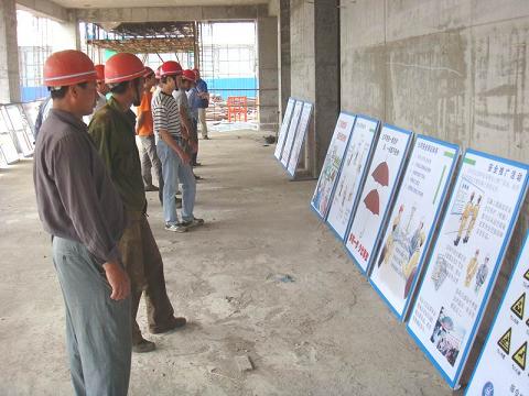 近日,安徽一建在“安全生產(chǎn)月”活動(dòng)中,組織開(kāi)展了“安全生產(chǎn)月”主題標(biāo)語(yǔ)簽字活動(dòng)、懸掛主題宣傳口號(hào)標(biāo)語(yǔ)、購(gòu)買安全宣傳材料、出安全知識(shí)板報(bào)、組織參加“安全伴我行”知識(shí)競(jìng)賽和安全漫畫(huà)展活動(dòng)。圖為施工現(xiàn)場(chǎng)人員觀看以安全漫畫(huà)為主要形式的安全文化展覽。