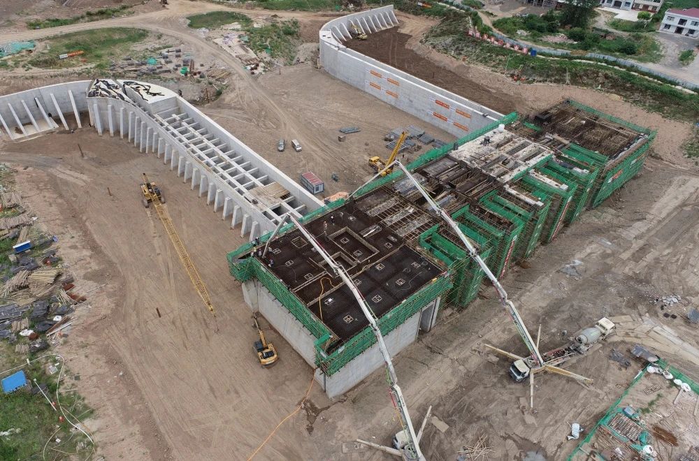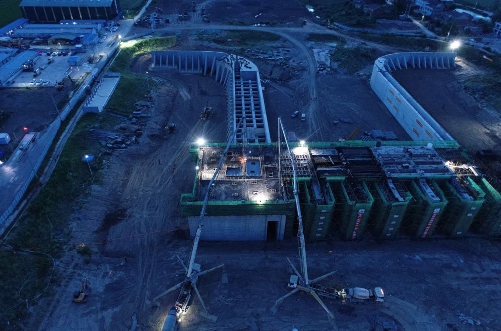 6日上午10時30分正式開倉,項目部投入2臺汽車泵、16輛攪拌車及50余名施工人員。為確保高溫下混凝土施工質(zhì)量,項目部采取預(yù)埋冷卻水管、加冰降溫、灑水養(yǎng)護(hù)等技術(shù)措施,嚴(yán)控混凝土溫度;各班組輪番作業(yè)、緊密配合,克服高溫不利影響,最終圓滿完成澆筑任務(wù),為工程整體推進(jìn)提供了有力保障。