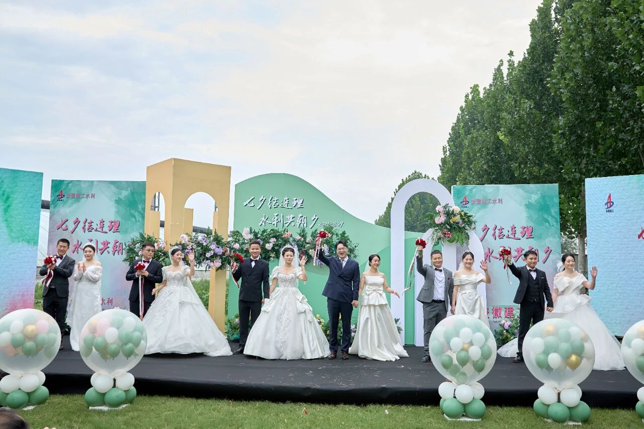 王勝利在證婚詞中深情寄語,表示這場集體婚禮既是公司為奮斗者量身定制的“幸福履約書” ,更是企業(yè)與職工共享發(fā)展成果的生動體現(xiàn)。希望新人們在未來的日子里永沐愛河、幸福美滿,如我們鑄就的大壩般堅不可摧,如我們疏通的江河般包容通達(dá),如清澈的活水般永葆生機(jī),既成為彼此溫暖的依靠、也成為對方事業(yè)上最堅定的支持者,不僅建設(shè)好小家、更要共同為我們這個“大家”——安徽建工水利的高質(zhì)量發(fā)展貢獻(xiàn)青春與智慧。