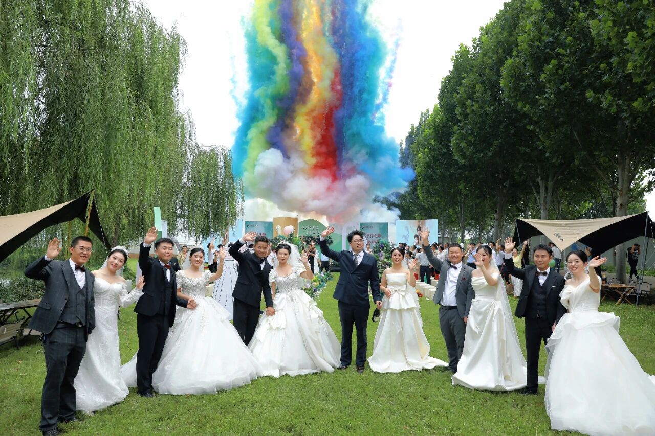 儀式尾聲,絢爛彩煙騰空而起,將現(xiàn)場氛圍推向高潮。隨著主持人宣布婚禮圓滿禮成,公司領(lǐng)導(dǎo)、干部職工紛紛向新人送上祝福,掌聲與歡笑交織,為這場水利人的浪漫盛典畫上圓滿句號。