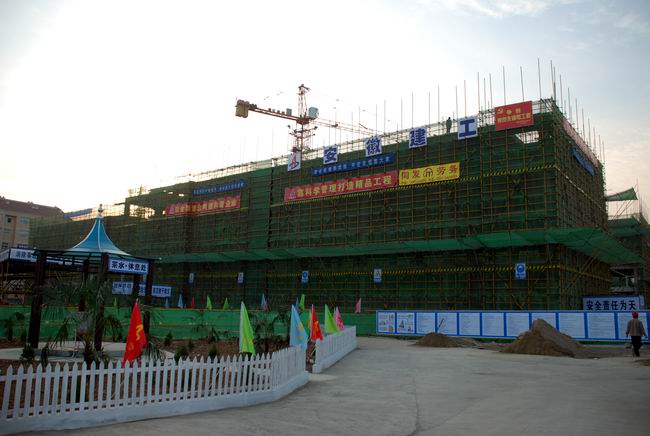 該項目是國內公司2010年度爭創(chuàng)省、市安全質量標準化示范工地之一。在項目的創(chuàng)建過程中,國內公司總經(jīng)理陳傳文、黨總支書記陳月琴曾多次親臨施工現(xiàn)場指導現(xiàn)場文明施工和項目文化建設。公司對該項目健全了管理組織,制定了安全生產(chǎn)管理制度,加大了安全生產(chǎn)投入,選派二名專職安全員駐點管理,確保安全技術措施落到實處。同時,進一步加大了施工組織設計和專項施工方案的審核工作,加強了施工現(xiàn)場危險性管理和過程監(jiān)控,保證了合同管理目標的實現(xiàn);公司黨總支在該項目上開展爭創(chuàng)黨員先鋒號工程活動,有力地促進了雙文明示范的創(chuàng)建工作。2010年11月17日,該項目以88.9分的成績順利通過市安全質量標準化示范工地驗收。
