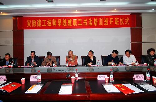 10月23日上午,安徽建工技師學(xué)院隆重舉行書法培訓(xùn)班開班儀式。省國資委副主任、常務(wù)副書記吳經(jīng)華,省書法家協(xié)會(huì)名譽(yù)主席張良勛,省書法名家余國松、傅愛國、張兆玉、史培剛,劉重秋、潘偉城,安徽建工集團(tuán)公司領(lǐng)導(dǎo)李長斌、王禮義等出席了開班儀式,安徽建工技師學(xué)院領(lǐng)導(dǎo)、學(xué)院中層管理人員及書法愛好者參加了開班儀式。