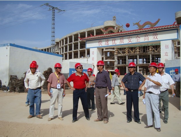 7月7日,胡運(yùn)成董事長(zhǎng)在省二建公司總經(jīng)理費(fèi)瑞林、海外公司總經(jīng)理吳康、省一建公司總經(jīng)理范毓慶以及駐阿經(jīng)理部領(lǐng)導(dǎo)班子的陪同下,不顧一天的旅途勞累,克服時(shí)差影響,冒著酷暑走訪了康斯坦丁大學(xué)城各施工項(xiàng)目部,詳盡了解了項(xiàng)目施工進(jìn)展情況,并與現(xiàn)場(chǎng)施工人員進(jìn)行了親切交談。 7月8日、9日,胡董事長(zhǎng)在現(xiàn)場(chǎng)參加了兩次康大項(xiàng)目專題座談交流會(huì)。會(huì)上,各項(xiàng)目部負(fù)責(zé)人匯報(bào)了項(xiàng)目各標(biāo)段生產(chǎn)管理情況,吳福軍同志就康大項(xiàng)目整體現(xiàn)狀做了系統(tǒng)的總結(jié)匯報(bào)。聽取匯報(bào)后,海外公司總經(jīng)理吳康同志作了發(fā)言。他對(duì)項(xiàng)目經(jīng)理部目前的工作進(jìn)度、職工精神面貌給予了肯定,并著重就圖紙?jiān)O(shè)計(jì)、水泥供應(yīng)、設(shè)備協(xié)調(diào)、人員補(bǔ)充、隊(duì)伍建設(shè)等施工管理的具體問(wèn)題提出了意見和要求。