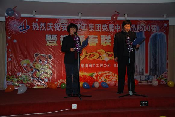 12月30日下午,由國內(nèi)工程公司主辦的熱烈祝賀安徽建工集團(tuán)榮膺中國企業(yè)500強(qiáng)暨迎新春聯(lián)歡會在學(xué)苑大廈多功能廳隆重舉行。集團(tuán)公司董事長、總經(jīng)理胡運(yùn)成,黨委書記張海平,副董事長李長斌,副總經(jīng)理戴良軍,紀(jì)委書記、工會主席劉振武,副總經(jīng)理王元曦,總經(jīng)理助理童宗勝、楊斌,副總會計師王曉軍,副總工程師宣善宏以及機(jī)關(guān)部門主要負(fù)責(zé)人應(yīng)邀出席。國內(nèi)公司全體員工參加了聯(lián)歡活動。
