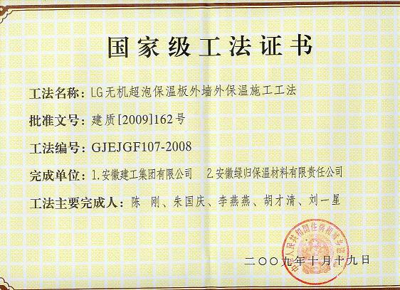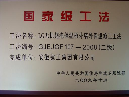 3月29日,國家級工法成果推廣與經(jīng)驗交流研討會在北京召開。原建設(shè)部副部長、中國建筑業(yè)協(xié)會會長鄭一軍,住房和城鄉(xiāng)建設(shè)部總經(jīng)濟(jì)師李秉仁等出席研討會。會議向獲得2007年-2008年度國家級工法的完成單位頒發(fā)了獎牌和證書。安徽建工集團(tuán)有限公司編制的《LG無機(jī)超泡保溫板外墻外保溫施工工法》(GJEJEF107-2008)被評為國家級工法,此次國家級工法的申報成功,不僅是集團(tuán)公司堅持技術(shù)創(chuàng)新取得又一突破,更為集團(tuán)公司特級資質(zhì)就位奠定了一定的基礎(chǔ)。